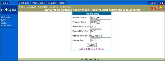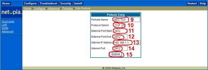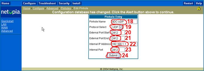 (Opnun á porti 2412 á router fyrir DC forrit til að verða active, einnig er hægt að nota þetta til að opna önnur port fyrir önnur forrit, þá er bara að breita port nr og nafni)