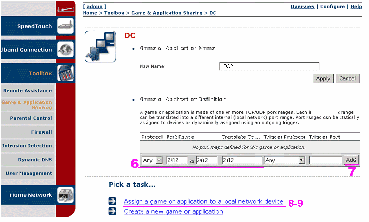 Klikkaðu núna á 8-9.Assign a Game or application to a local network device