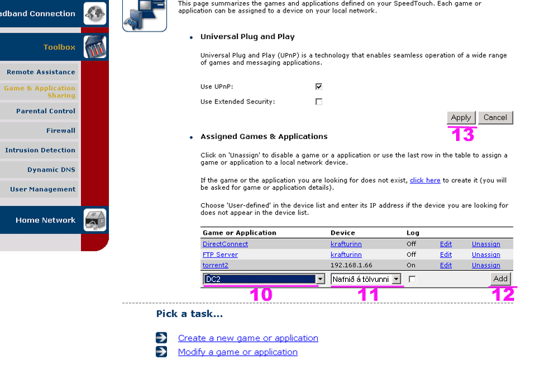 (Opnun á porti 2412 á router fyrir DC forrit til að verða active, einnig er hægt að nota þetta til að opna önnur port fyrir önnur forrit, þá er bara að breita port nr og nafni)