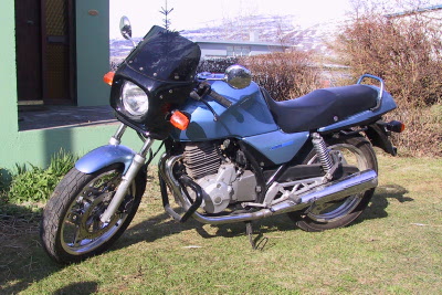 Honda XBR500, 1987, 30hp 170kg. Gamla hjólið mitt sem bróðir minn í Búðardal á núna.