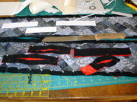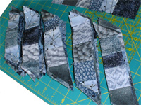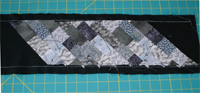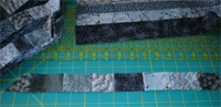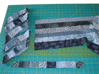 Stips sewn on base fabric to avoid distortion. One piece sewn at a time, seam opened and pressed.  |